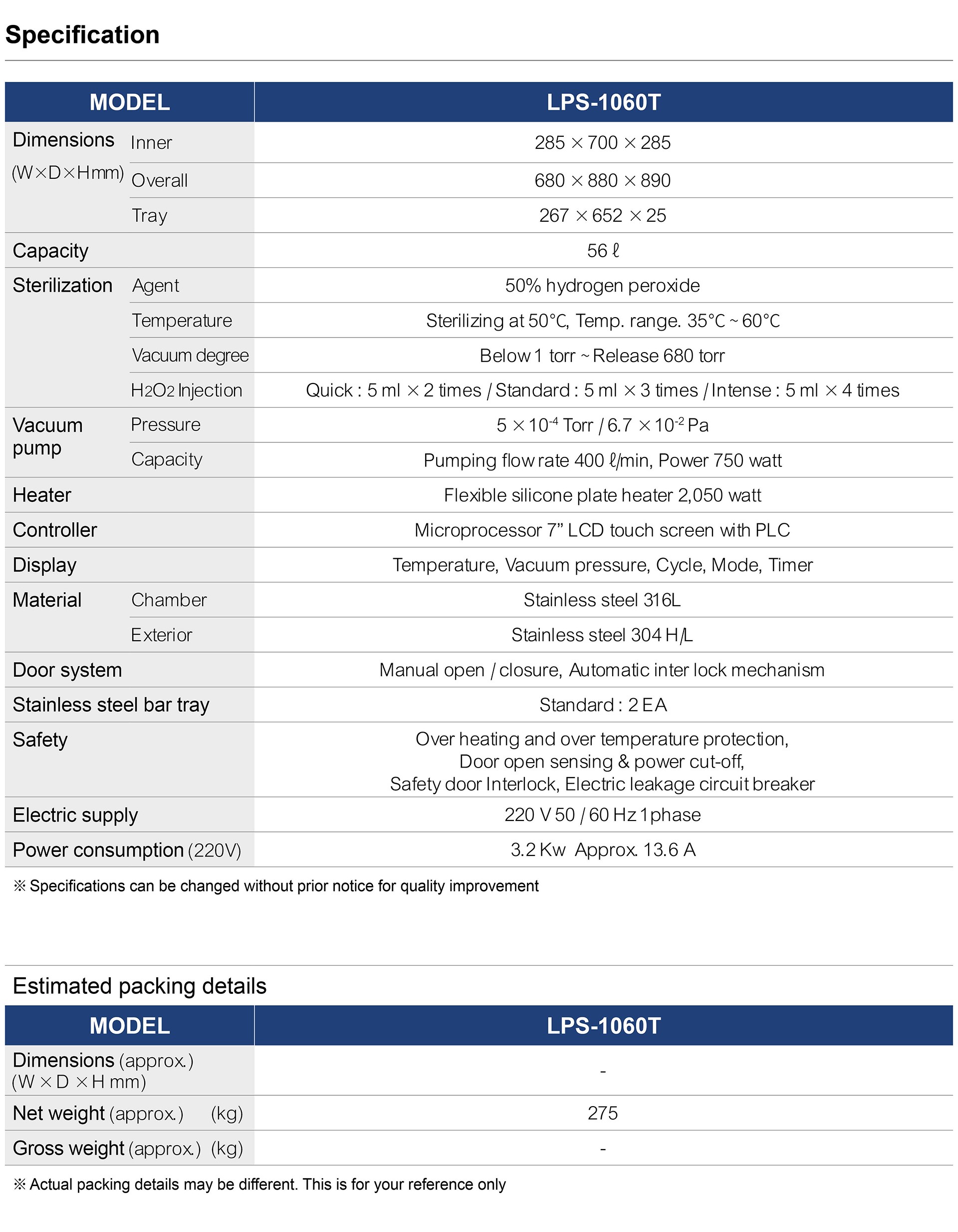 After sterilization, medical equipments can be used immediately. This increases the number of use per day as well as reduces user’s inventory costs and maintenance fee Speedy sterilization processes which are completed within 30-60 min. |